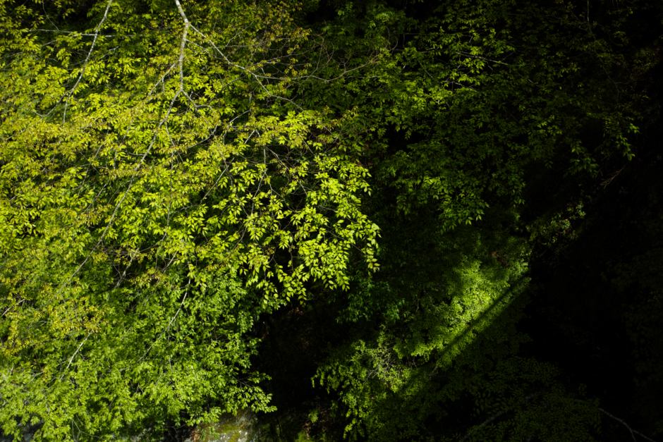 新緑、橋の上より