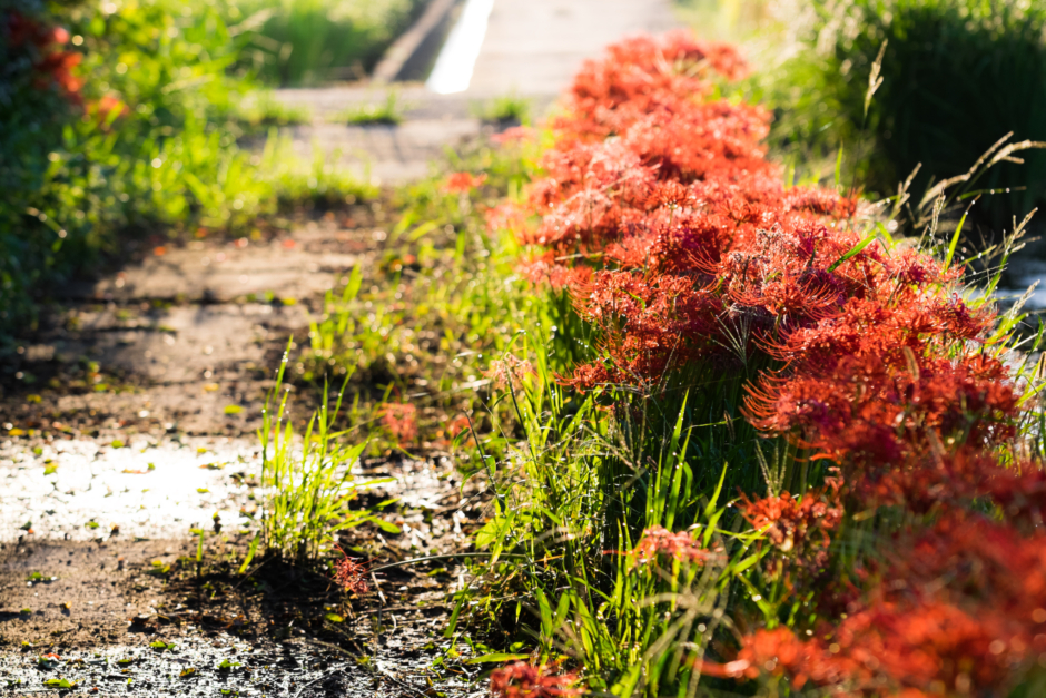 朝の喧騒と曼珠沙華の輝き