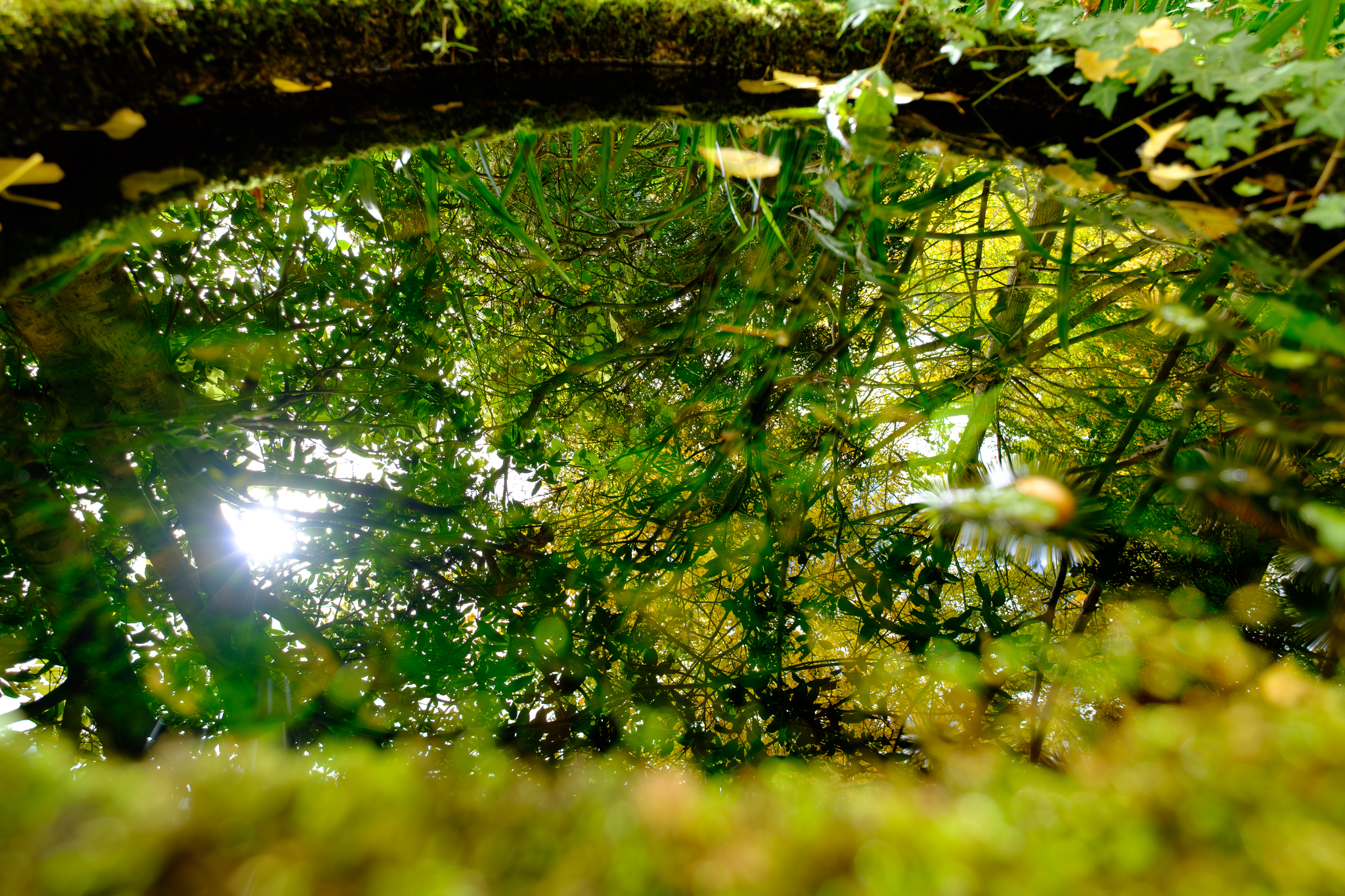 銀杏の空の下、石桶に張った水に映るもの。もう数日も経てば水面が銀杏の落ち葉で溢れるのでしょうが、今はまだその時ではない様子。ただ、リフレクションフェチとすればこういうのも大好物で、このモチーフだけで何十枚も撮れそうな勢い。というのは少し言い過ぎかもしれませんが、次に訪れるときが楽しみでしょうがないというのは偽らざる気持ちで。