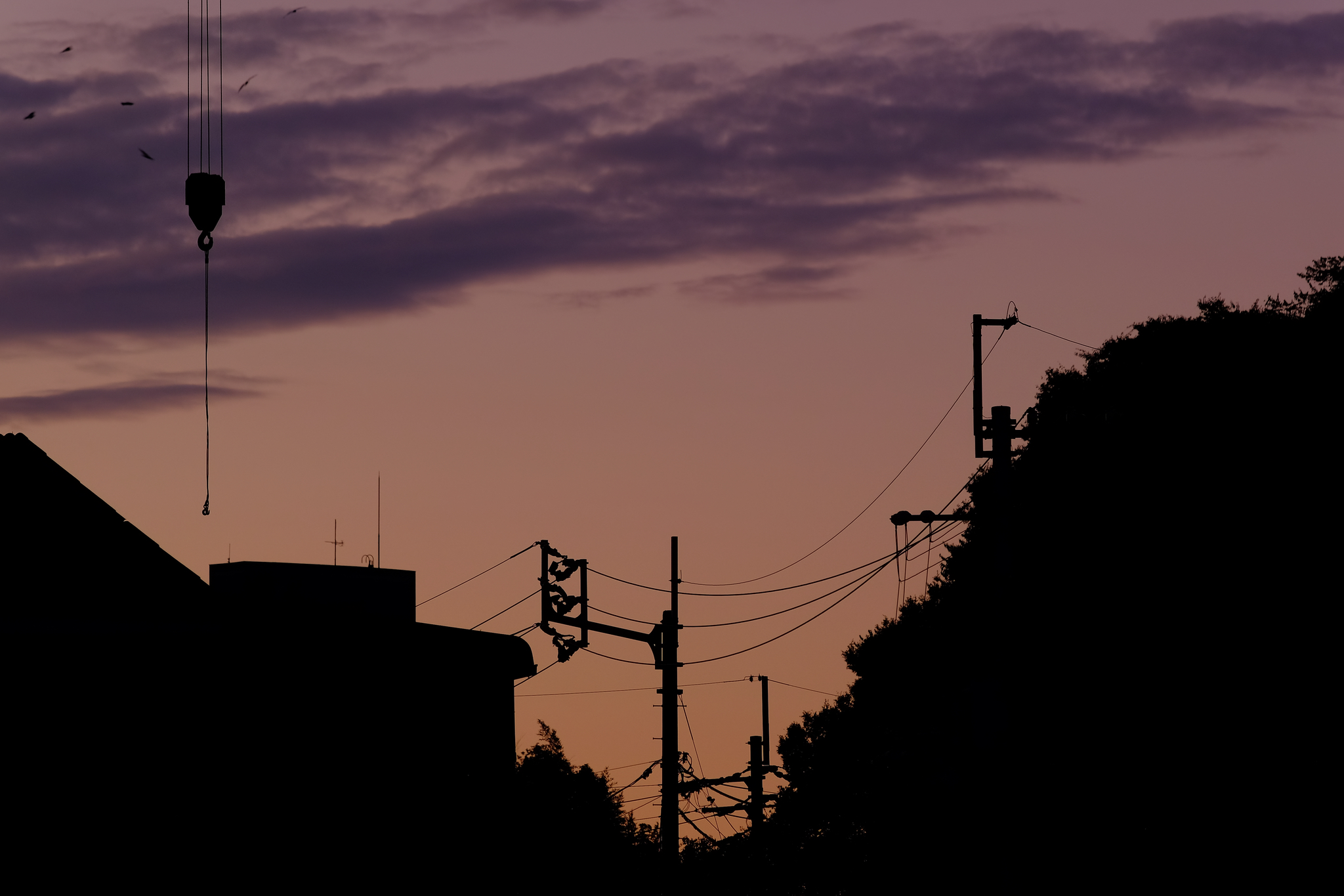 お気に入りの港で暮れゆく空を眺めながら感傷に浸るひととき。陽が落ちてすぐの落ち着いた色彩はどうしようもなくセンチメンタルで、心を空っぽにしてぼーっと眺めるのにちょうどいい雰囲気。そんな中、電線やクレーンのシルエットが並ぶ風景は影絵のような佇まいで、静かに物語を紡いでゆくのでした。