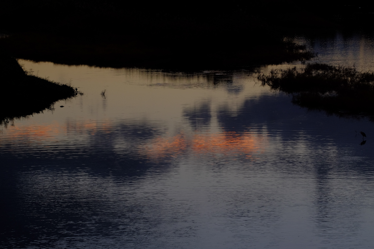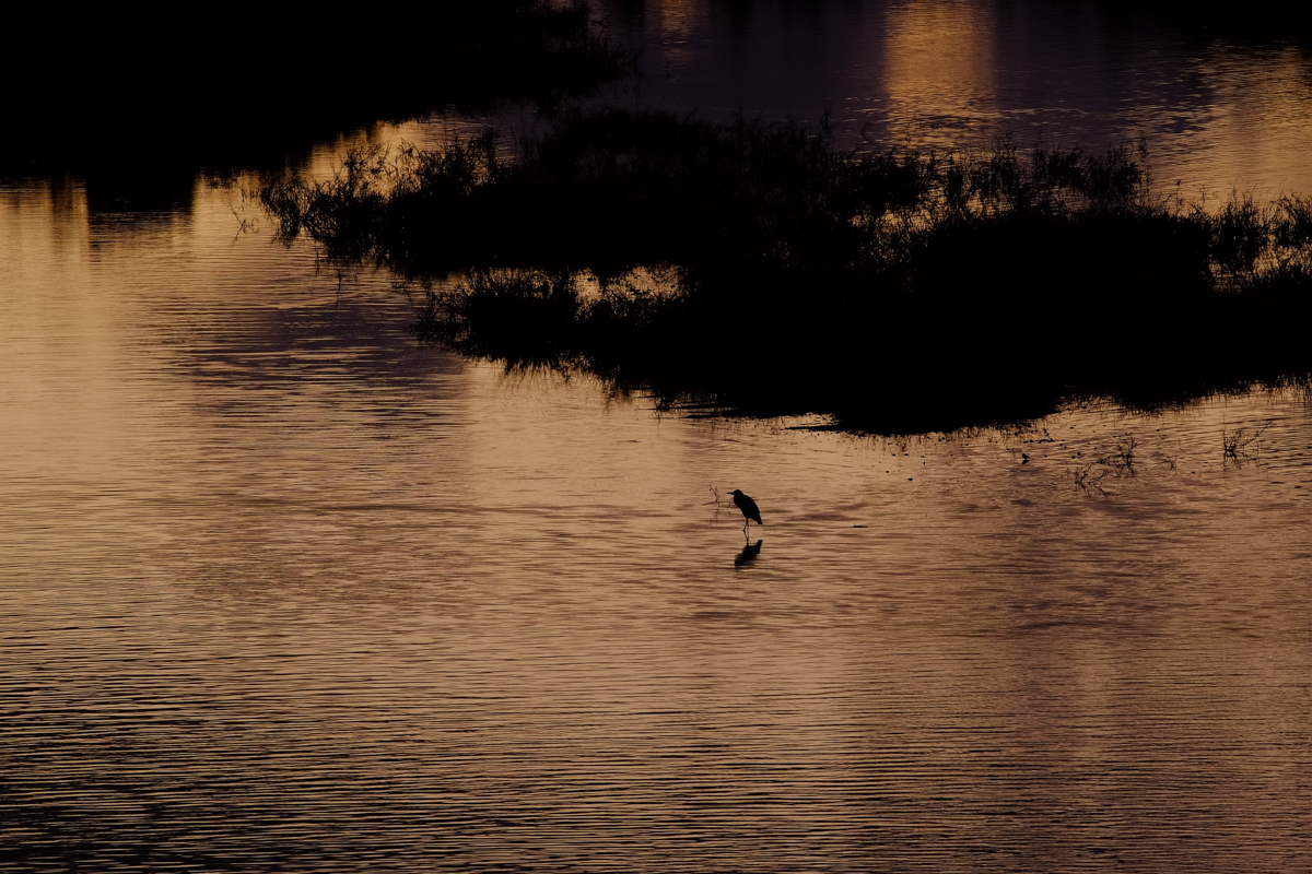 橋の中央に三脚をセットしてひとしきり。狙うのは水鳥たちが戯れる風景。いつもならもっと多いはずの水鳥たちが今日に限ってあまり見当たりません。少し肩透かしを食らった気分ですが、それでも撮る価値があると思えるようなこの風景。