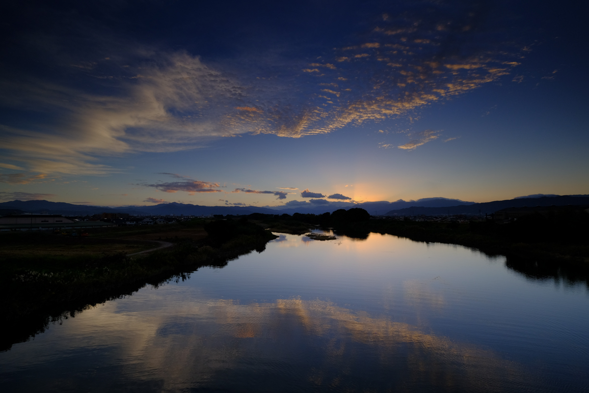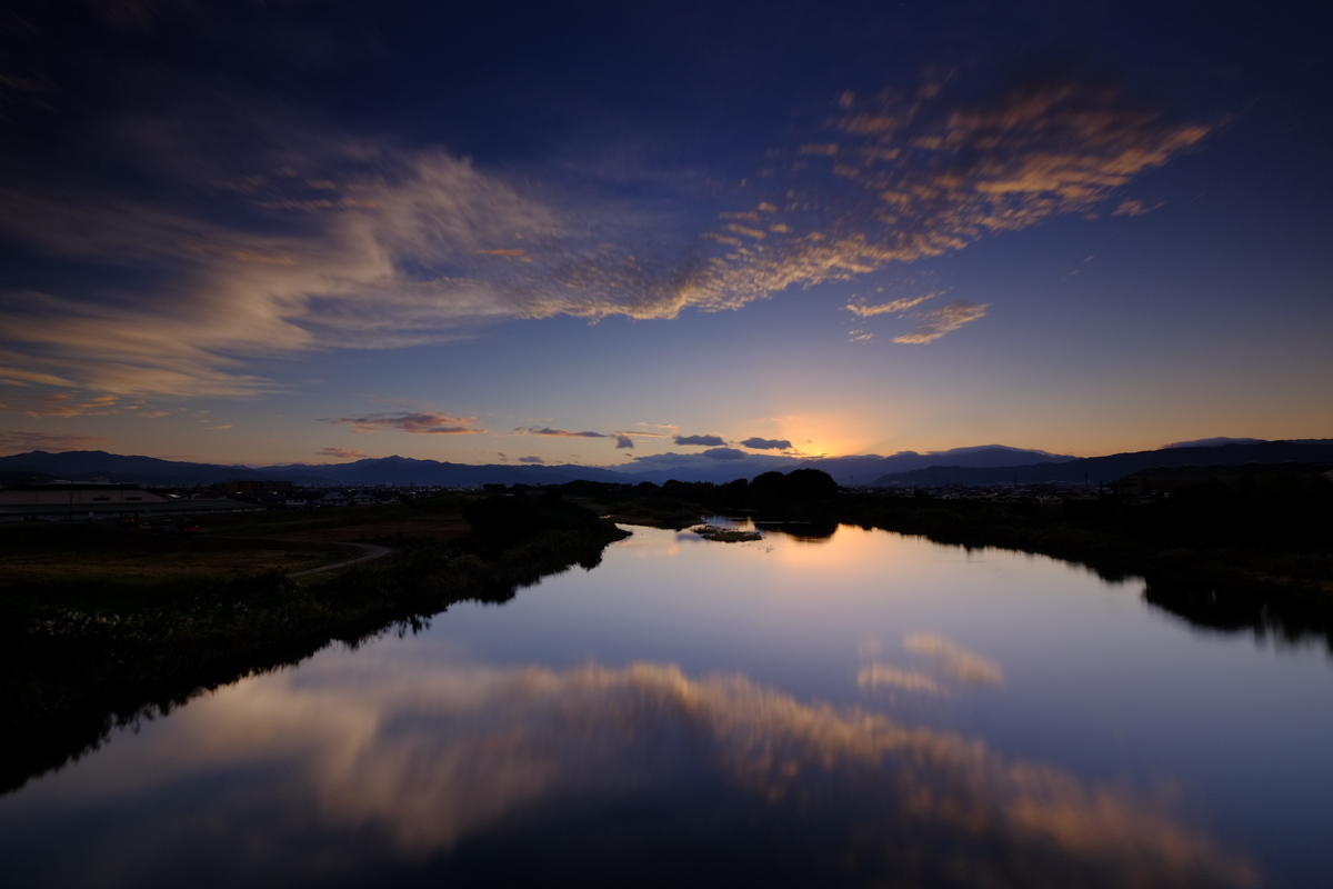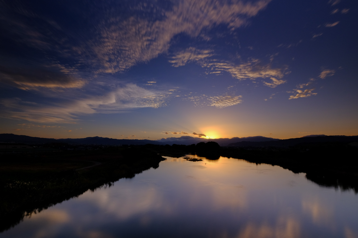 刻々と表情を変えゆくその風景。今度は山の陰から朝陽が姿を見せ始めました。水量たっぷりの水鏡は空の風景を映して感動的。となれば、ND1000を装着して鏡面に磨きをかけるのも当然の選択。この滑らかな質感、たまりませんね。