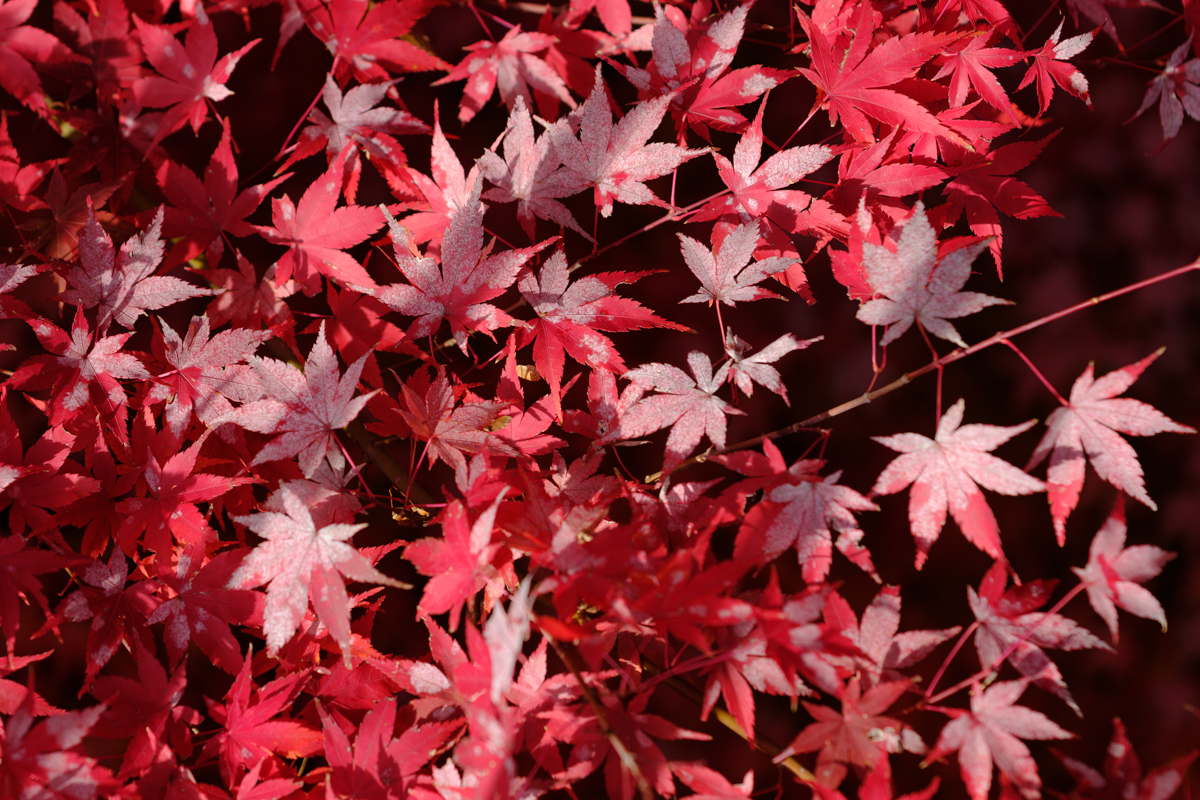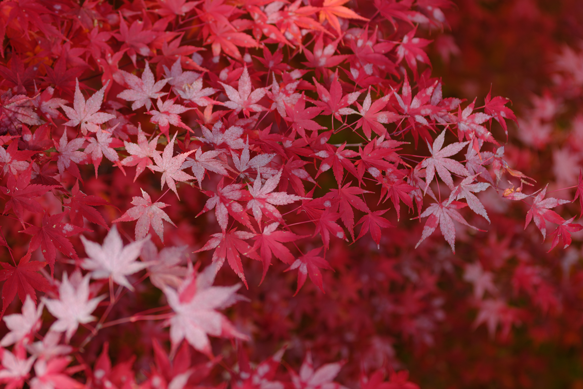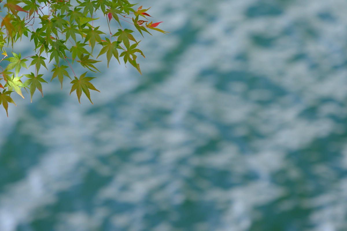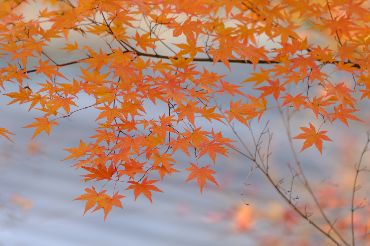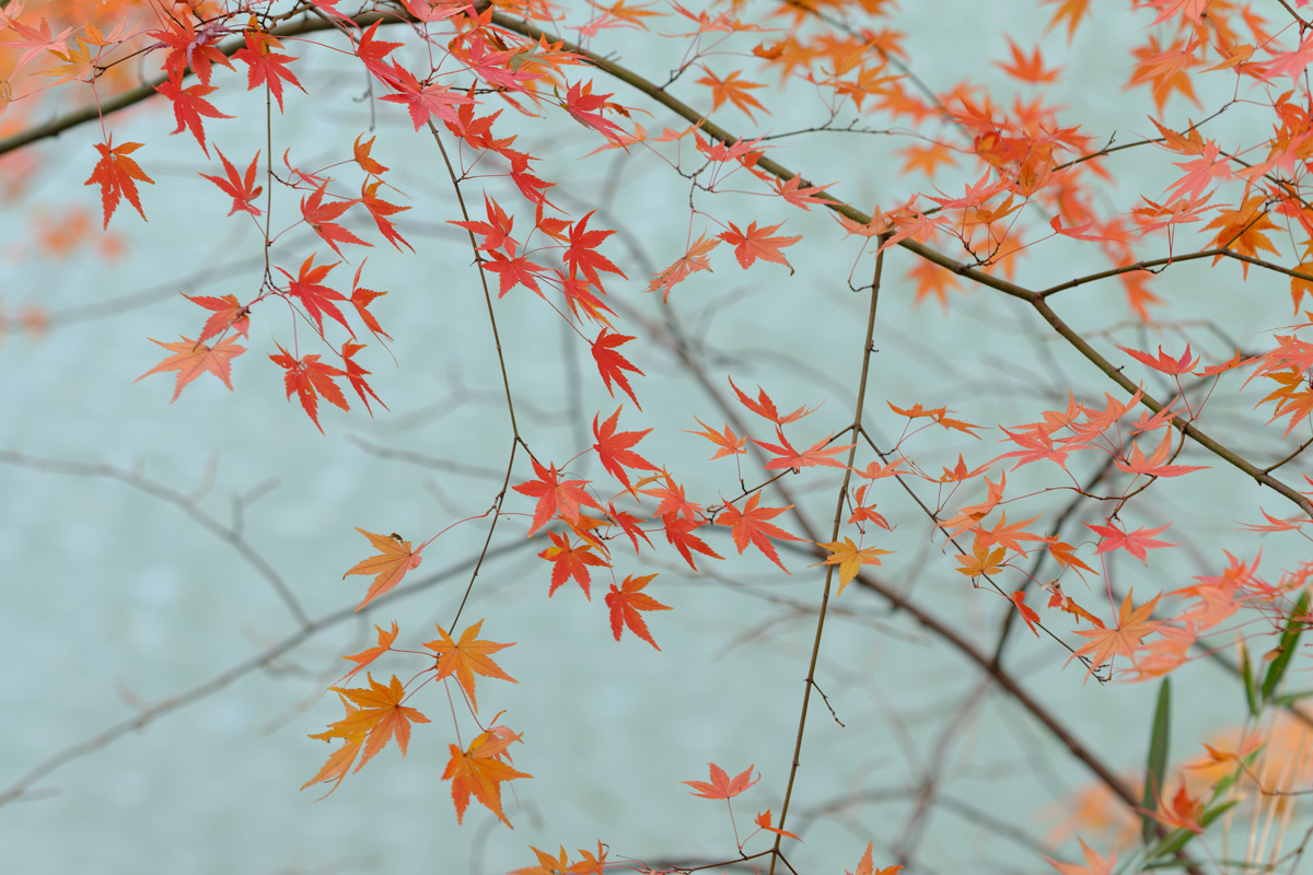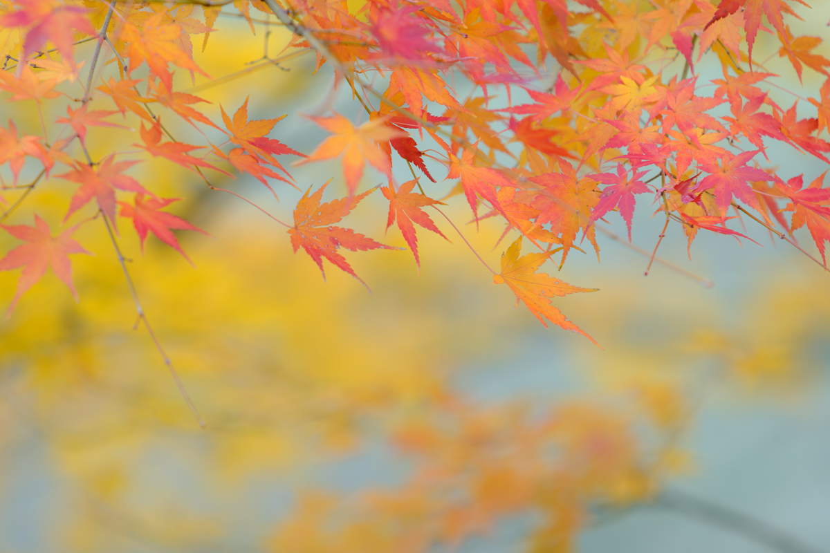 撮影は続きます。池の周りを彩る色とりどりの紅葉とさまざまな表情の水の色。途中、時地人(じじじん)というリゾートホテルの前を通りかかったのですが、この辺りの紅葉が特に秀逸。実はこの辺の撮影だけで半分以上の時間を費やしたような気がします。そういえば、撮影中に背後から聞こえる賑やかな声(日本語に混じって英語も少し)に振り返ると結婚式の前撮りの一団が迫ってきていてハッとしたのですが、この彩りの中だといい写真が撮れたのでしょうね。