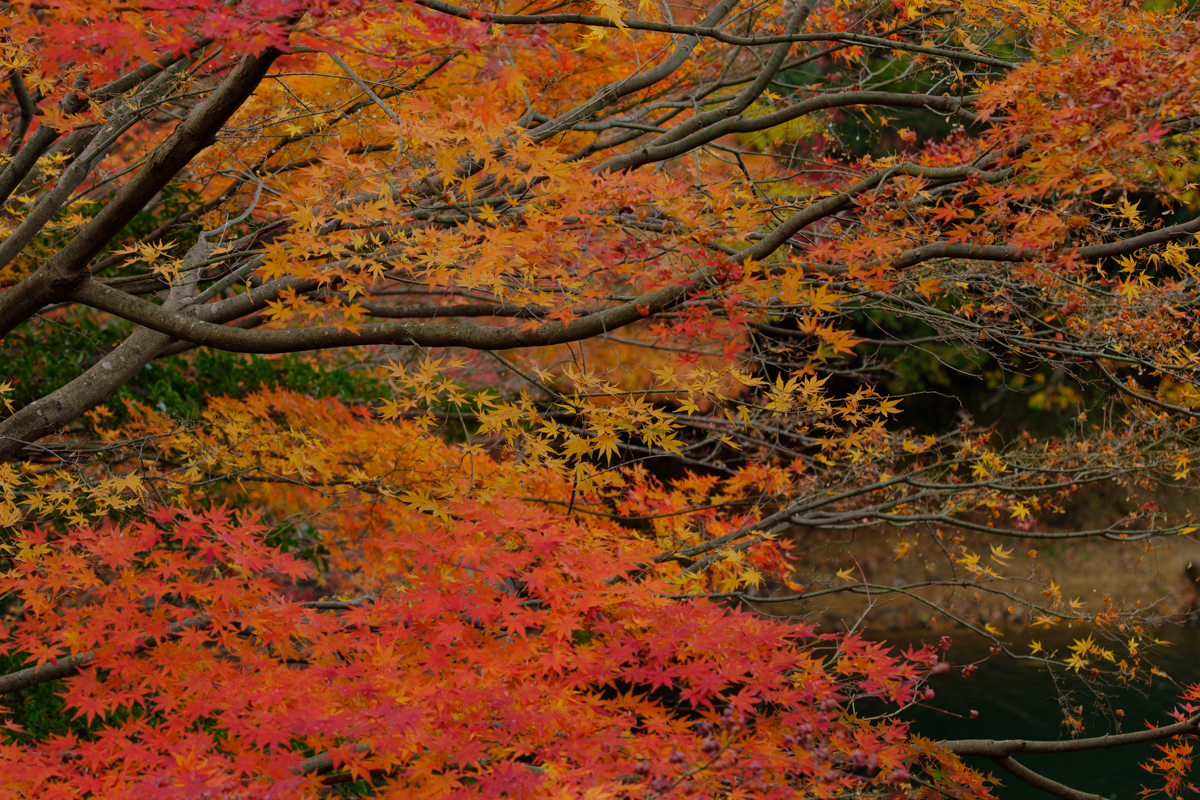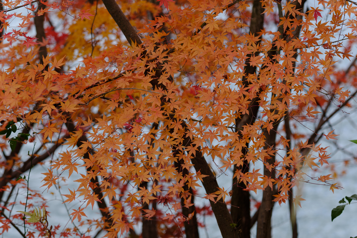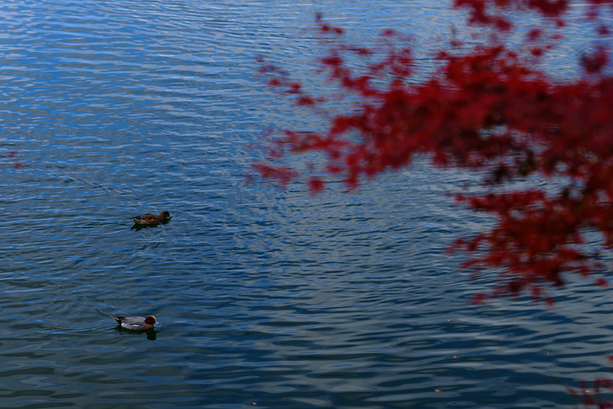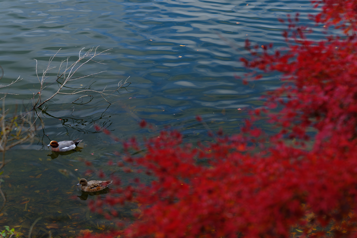 とにかく、紅葉と水辺の風景というのが相性が抜群。鴨たちもワタシの意図を汲んでくれて構図の中を行ったり来たり。惜しむらくはどんよりした空模様ですが、それはそれでしっとりとした発色に貢献してくれていると考えることにしましょうか。それにしても、PLフィルターとベルビア仕上げの鮮やかさは素晴らしいですね。