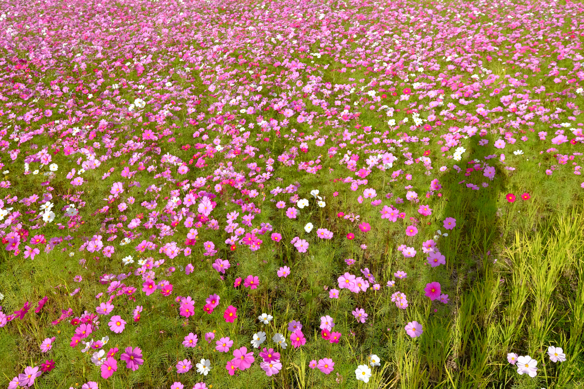 先日撮ったコスモス畑はまだ見頃でした。今日もたくさんの人が立ち寄って大盛況。ワタシは冷やかし程度に。