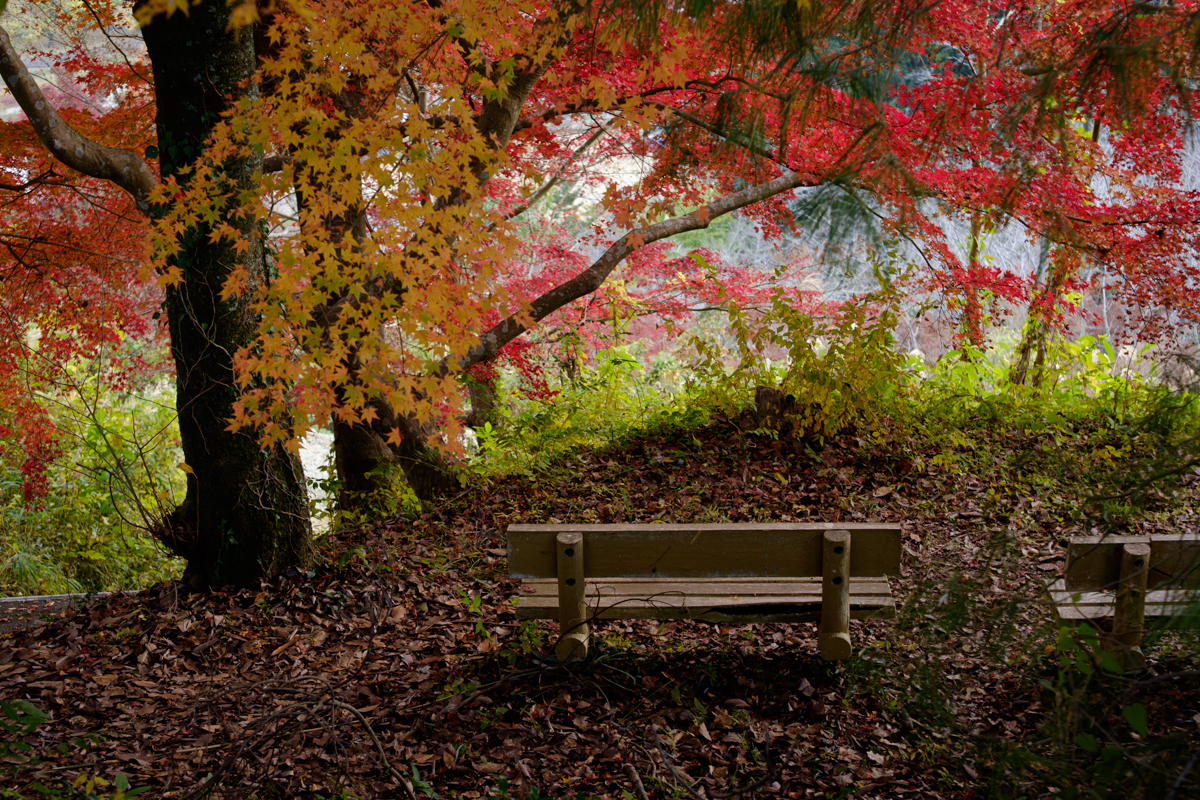 車に戻ろうと歩いていたら、視線の先にちょっとした竹林と紅葉の風景を見つけたちゃったんですよね。となれば、カエルさんを誘ってもうひと仕事。もちろん、カエルさんだってやぶさかではありません。むしろ、ワタシより前のめり。カエルさんの場合、帰りの車中で力尽きても問題はありませんからね。というわけで、ワタシにとって初めての、カエルさんにとってはン十歩ぶりの龍王公園はかなりの撮れ高になったのでした。しかし、明日は早朝出勤だというのにどーすんのコレ?