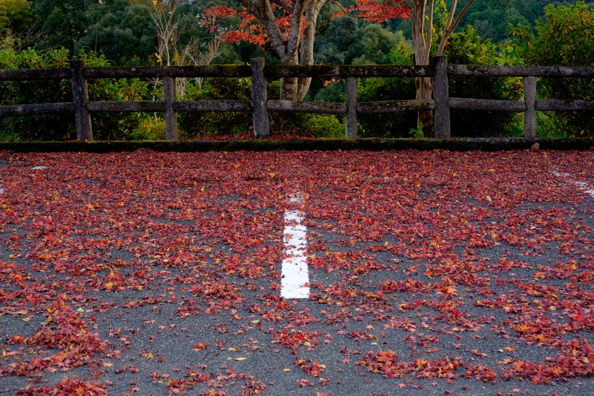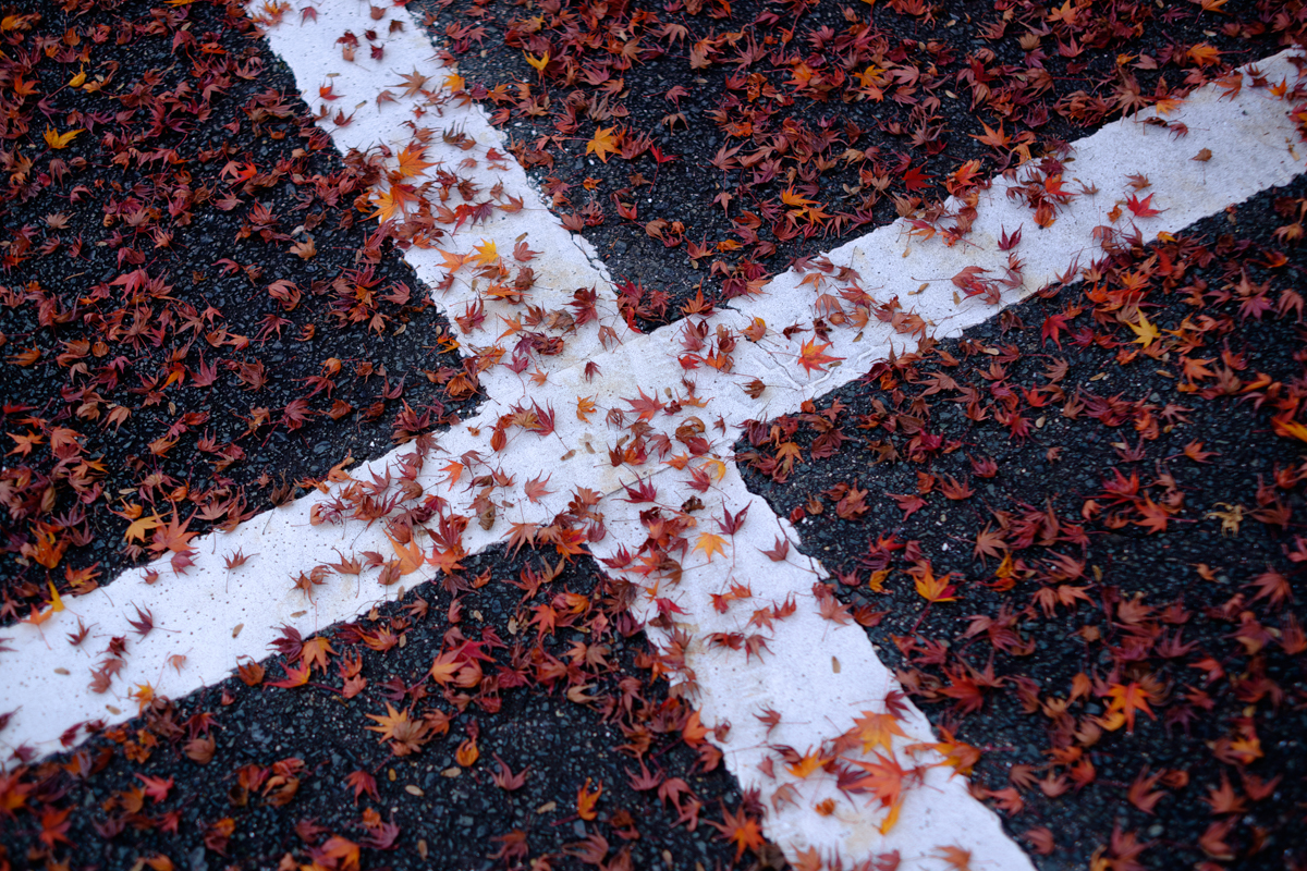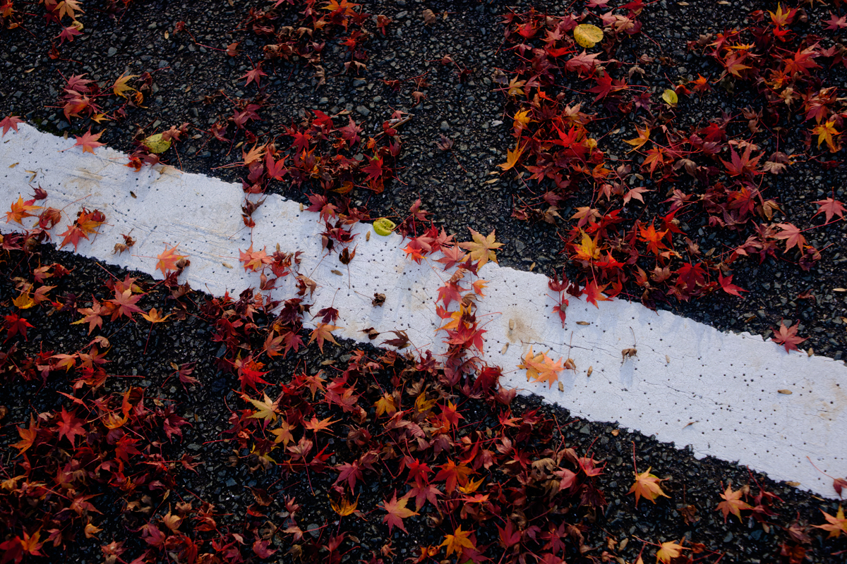 駐車場に戻ってきてもう少し。白線と落ち葉のコラボレーションの面白さをひとしきり。帰る帰ると言いながらなかなかそうはならないのはいつものパターン。けれど、もう被写体も残っていなさそうですし、と思っていたら・・・