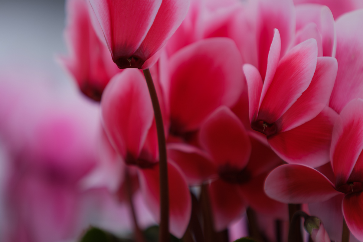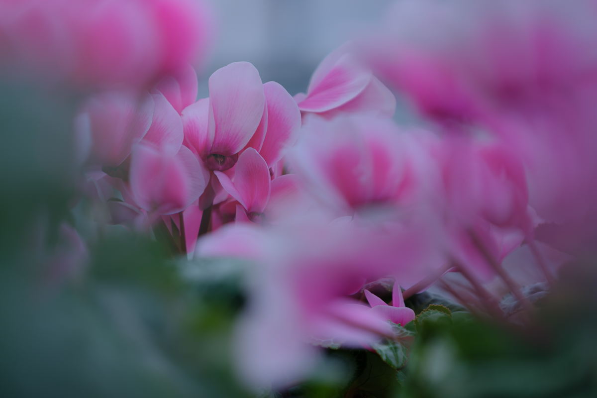 シクラメン。大好きな花です。家の出窓にもベランダにも鉢植えのシクラメンを置いているほど好きなんですよ。もちろん、撮るほうも言わずもがな。ただ、シクラメンを撮るのはなかなかに難しくて、過去に遡っても納得できる一枚というのは少ない気がします。好きな花だからこそ高めのボーダーラインを設定しているのかもしれませんが。そういう意味では今回の一枚は納得の出来。どれのことかって? それはこの四枚のうちの一枚ということで(笑)