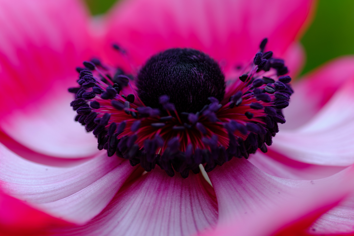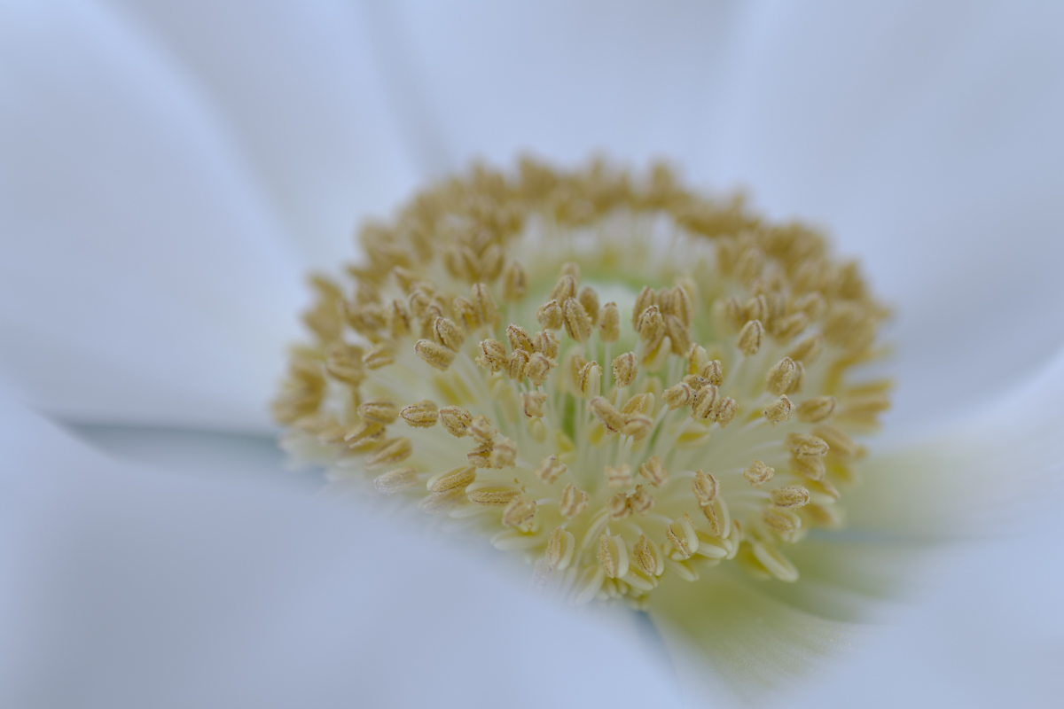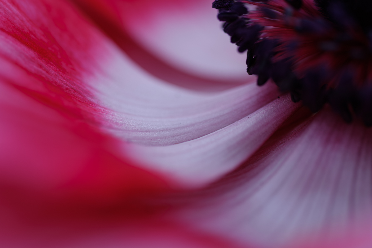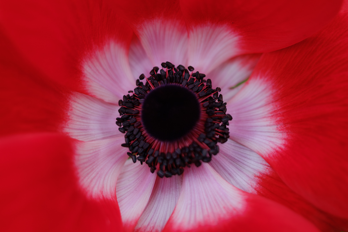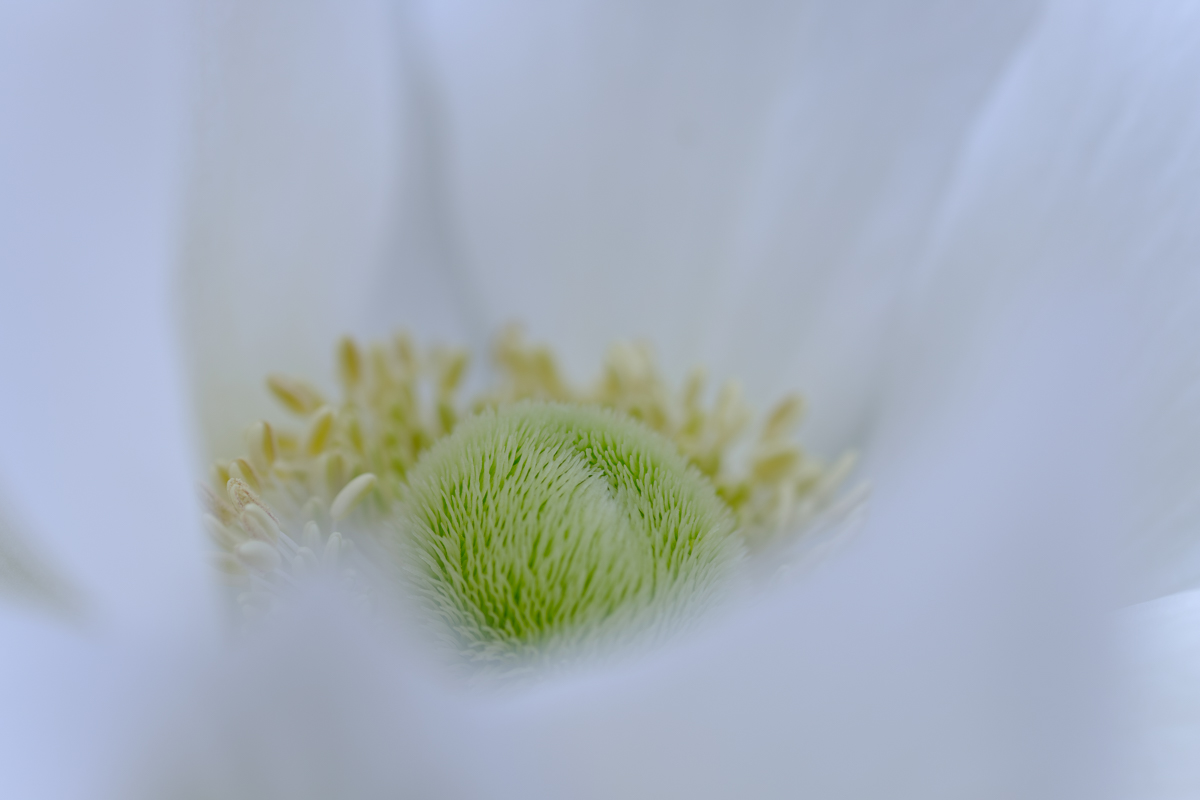 アネモネのハウスにやってきました。他の温室はじんわりと汗ばむほどの暖かさだったのですが、ここは少し温度が低め。いえ、むしろ、定期的に涼しい風が吹き抜けて、どちらかといえば寒いくらい。そんな状況なので、アネモネの花びらも風に揺られてふわりふわりと。それはなかなかに風情豊かなのですが、撮影するには気を使わなければならないことが増えて有り難くはないかもしれません。しかし、アネモネは花の中心を覗き込みたくなる衝動に駆られる造形ですね。